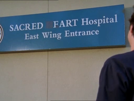 - J.D. verändert das "Sacred Heart" Schild so, dass die Aufschrift "Sacred Fart" zeigt, um sich jünger zu fühlen. Der Hausmeister nimmt dies als Grund J.D. mal wieder zu ärgern, indem er ein falsches Hinweisschild während des Fahrradteils im Triathlon anbringt, das den Berg hinunter führt.