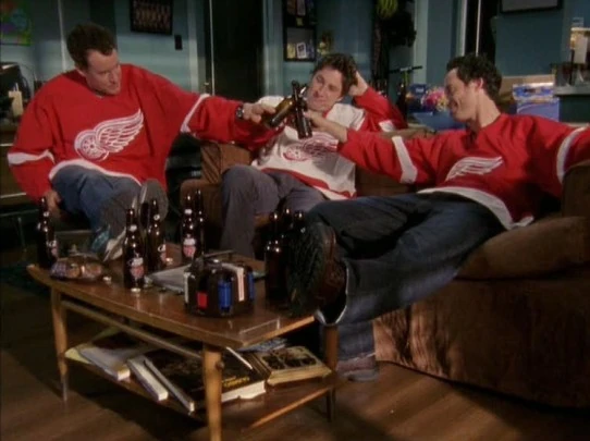 - Dr. Cox, Dan und J.D. tragen Trikots der Detroit Red Wings beim Football ansehen. Die Red Wings sind aber ein Eishockey-Verein.