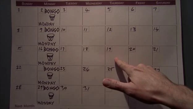 Der Hausmeister meint auf die Frage J.D.s, wieso er Bongos spiele: "Es ist Montag. Montag ist Bongotag." Später sieht man in seinem Kalender, dass jeden Montag "Bongo-Montag" eingetragen ist (Foto ganz unten).